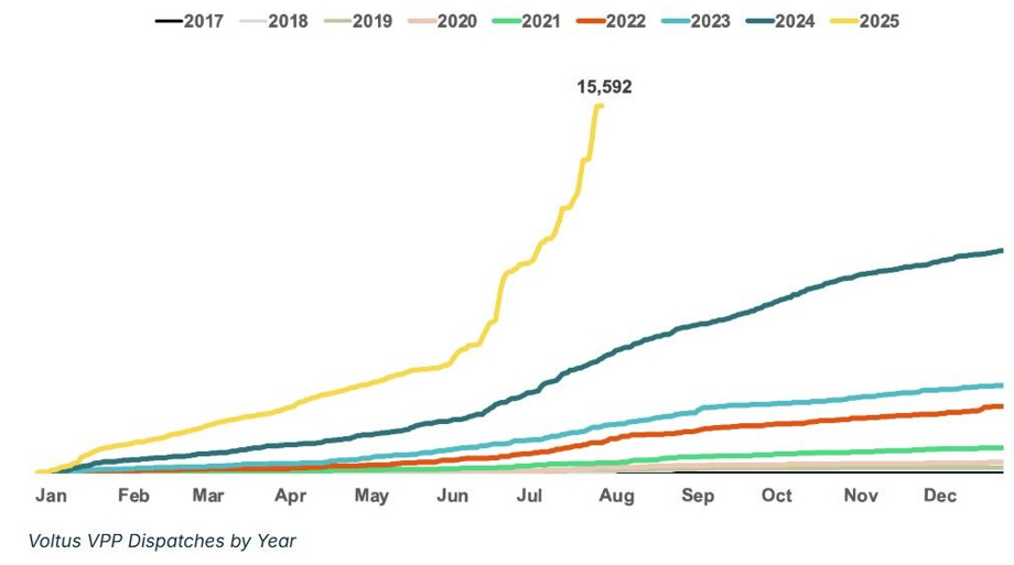 As you can see, dispatches began to pick up in 2024, but are already climbing off the chart in 2025. While the company’s capacity under management has roughly doubled since the summer of 2023, annual dispatches are up by more than six times, and appear to be on an exponential trajectory.